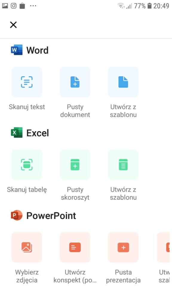 - Zainstaluj na telefonie lub tablecie aplikacje z App Store oraz Google Play Store, np. aplikację Office, która łączy w sobie wiele narzędzi, w tym świetnie radzi sobie z dokumentami PDF czy zamianą zdjęcia na dokument tekstowy. Aplikacja obsługuje także darmowy Word